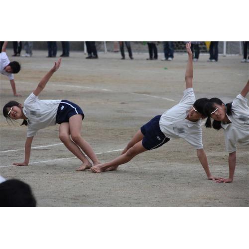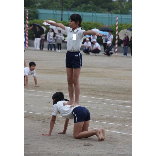 雨天の中強行した運動会。裸足組体操シーンもあり。