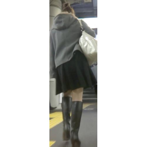 彼女は黒いミニスカートを履いていました。しかもヒールが高いブーツを履いていたので、余計にパンツが狙いやすそうです。そこでカメラを準備して撮影を始めました。彼女の背後に迫っていきます。