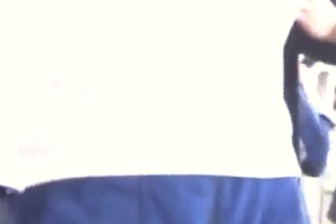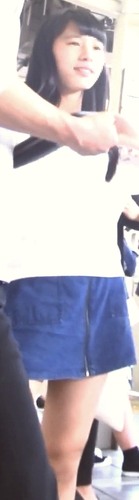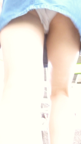 カワイイJDパンチラ盗撮 白パンツがデニムミニスカからむき出し