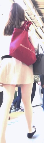 彼女はベージュ色の超ミニスカートを履いていました。ミニスカすぎて今にもパンツが見えそうでした。これは撮らないわけにいきません。すぐにカメラをセットして撮影を開始しました。彼女を追いかけながらスカートの中を狙う機会を伺います。