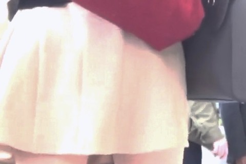 乗った電車はかなりの混雑ぶりでした。これなら電車内で彼女に接近して撮影していてもまずバレないでしょう。そこで知らぬ顔をして彼女に接近していきます。そして再度スカートの中へカメラを差し込みました。彼女が電車を降りるまでずっとスカートの中を撮り続けました。