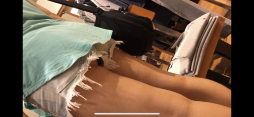 ショートパンツからのぞく綺麗な生足と、隙間から見えるお尻がかなりえっちです。