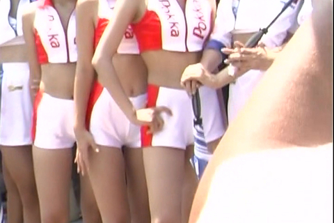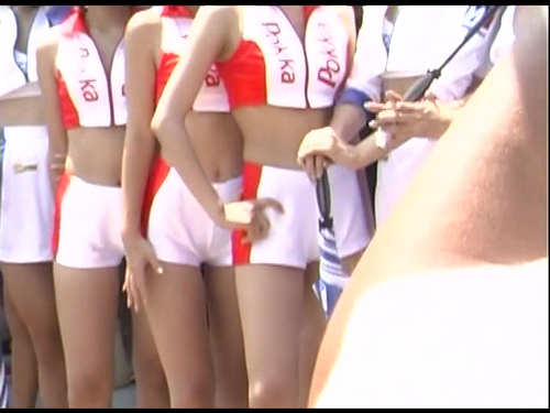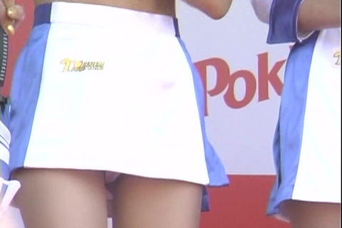 すらっと細く長い綺麗な脚。視点を上げていくと、短パンからこぼれる、はみ尻が…。カメラに向かって胸を突き出しはみ乳が…。羞恥心が薄れたサーキットで胸チラ・尻チラ・陰毛チラetc…。破廉恥極まりないこのショット!!!思わずツバがこぼれました…。