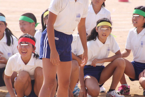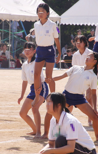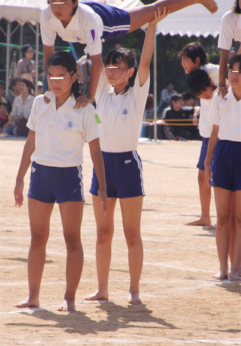 リレーの様子が20枚ほどある以外は全員裸足の組体操の様子、2チーム分。