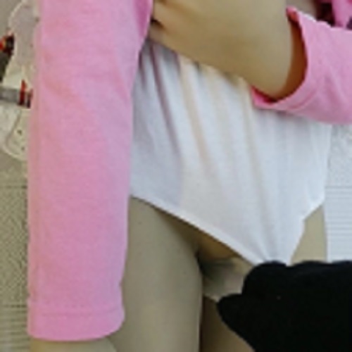 スカートの上からお股を触ってスカートめくってパンツをずらして割れ目を弄ったり、パンツも脱がして直接おま○こ弄ったりします。(イタズラ主は黒手袋着用です
