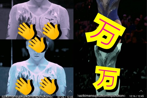 では、、体操女◯にえーるを込め、更に美しい動画に、、あーしてこ~して、しこしこぴゅ、