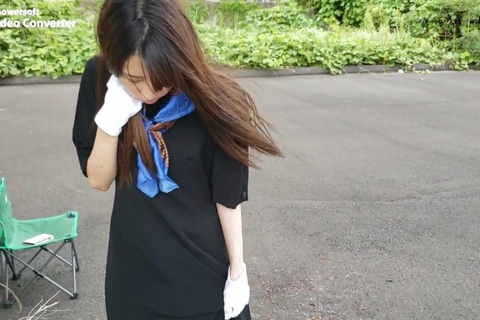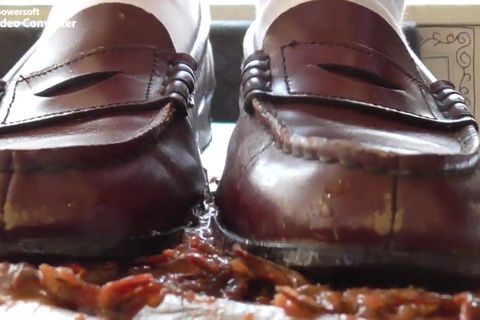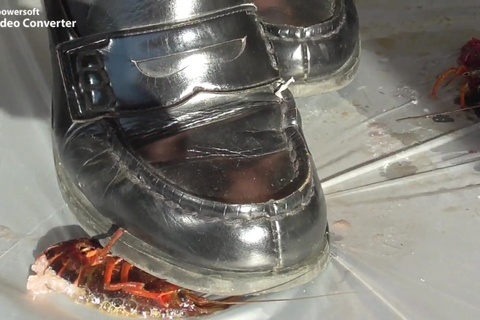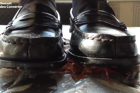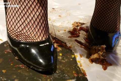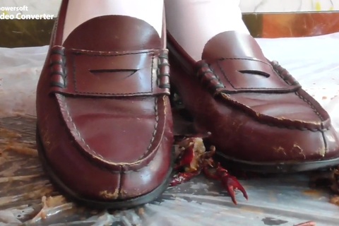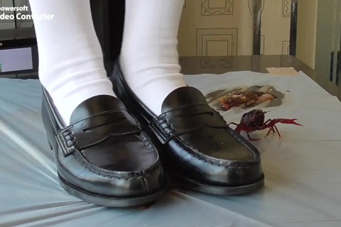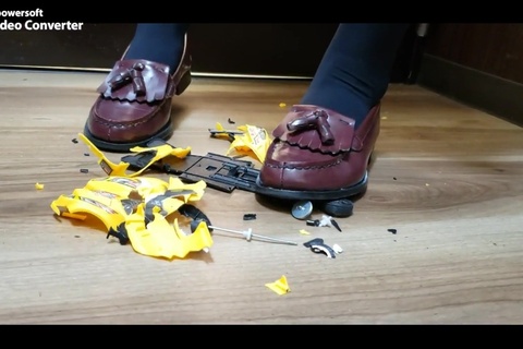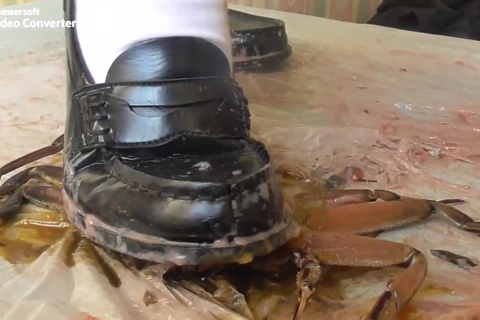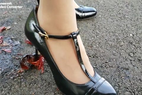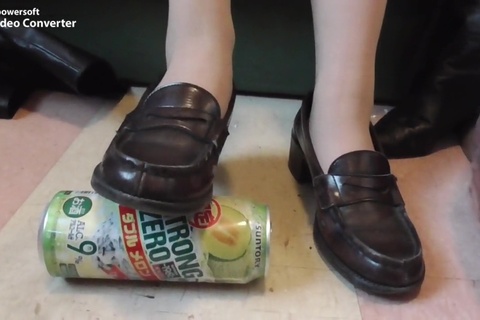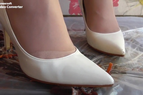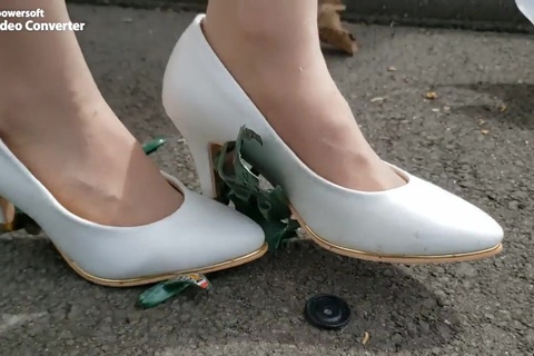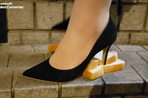 女の人が色んなものを靴で踏むだけの